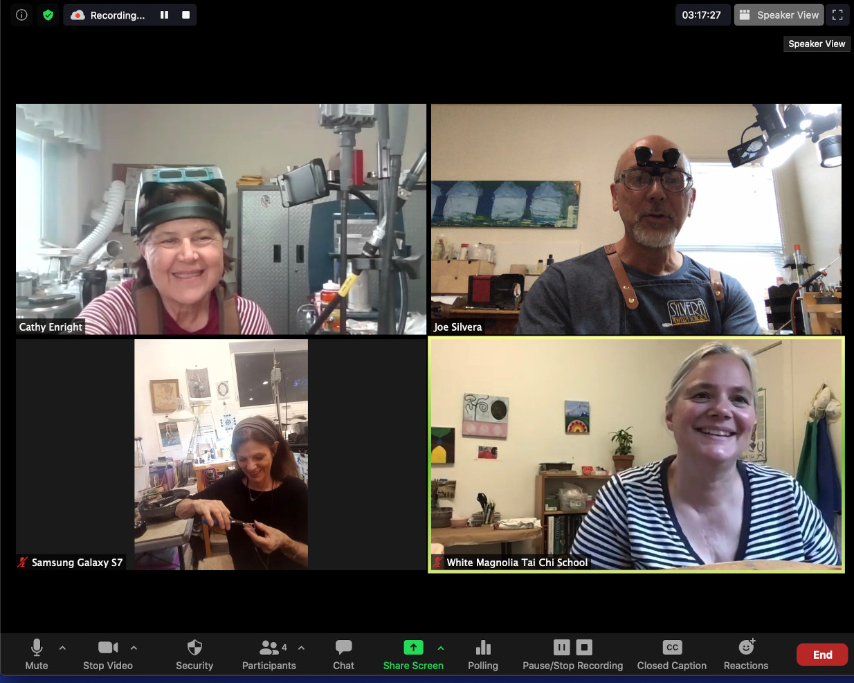 You can choose the format that is right for you. We offer classes in person at our school, live online through Zoom, and combinations of both. Both have advantages. In person classes include materials, and use of tools. Each student has their own bench during class. The teacher is there with you to help and answer questions. You’ll need to commute or travel to school, but parking in our area is free. Your instruction and practice is limited to class time, but students can purchase tools to continue to work at home and we also have open studio time.