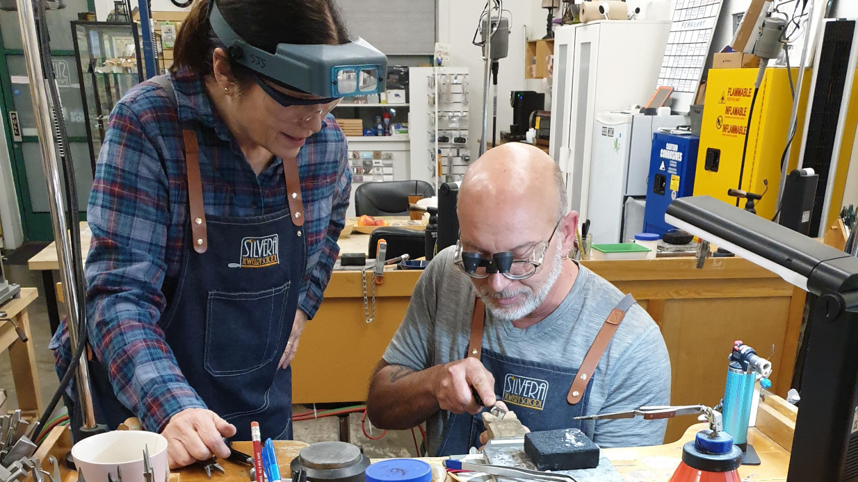 Email us at info@silverajewelry.com to arrange your private jewelry lesson. Lessons are taught at our school in Berkeley, CA. Our rates are $130 per hour for 1 person, $160 per hour for 2 people, and $200 per hour for 3 people.