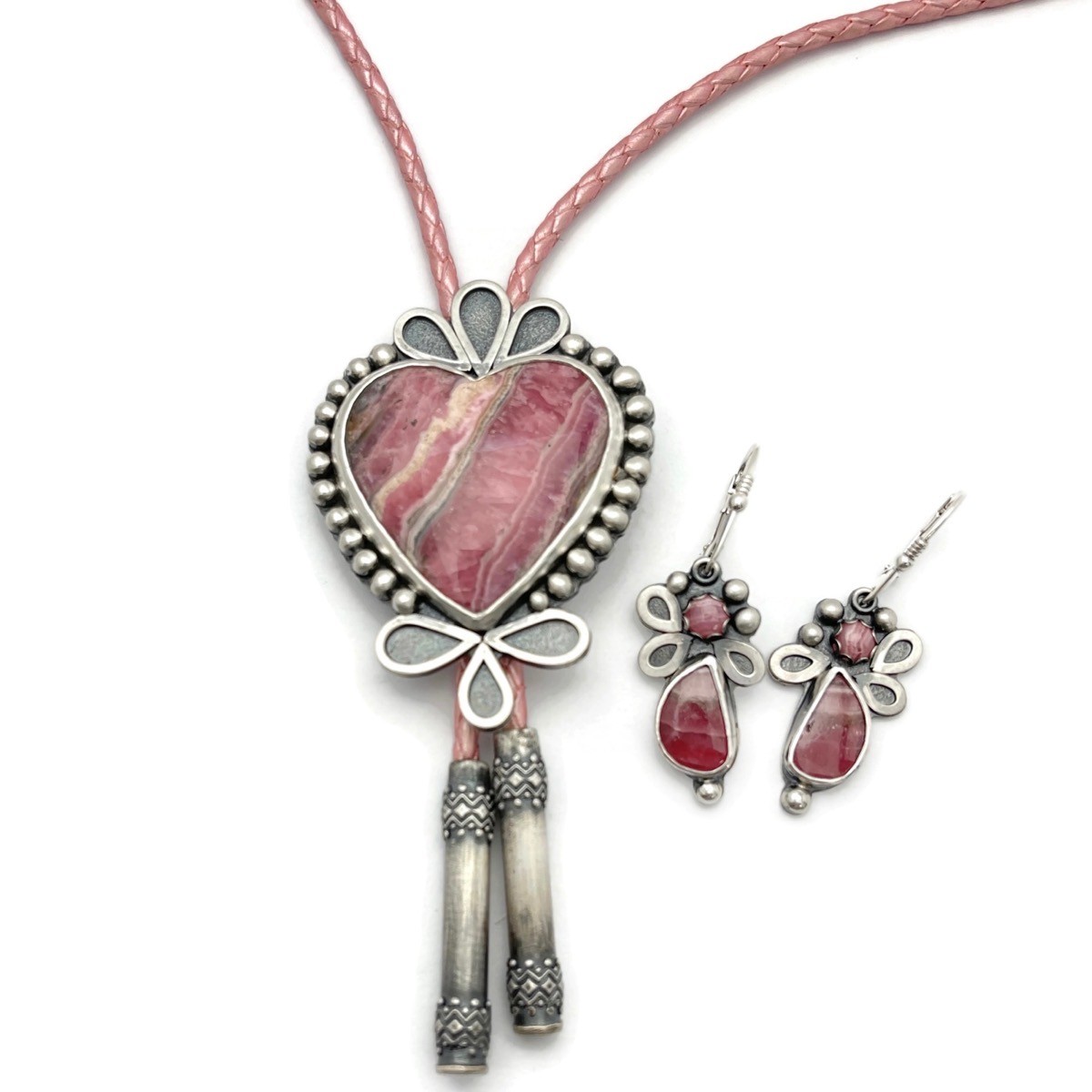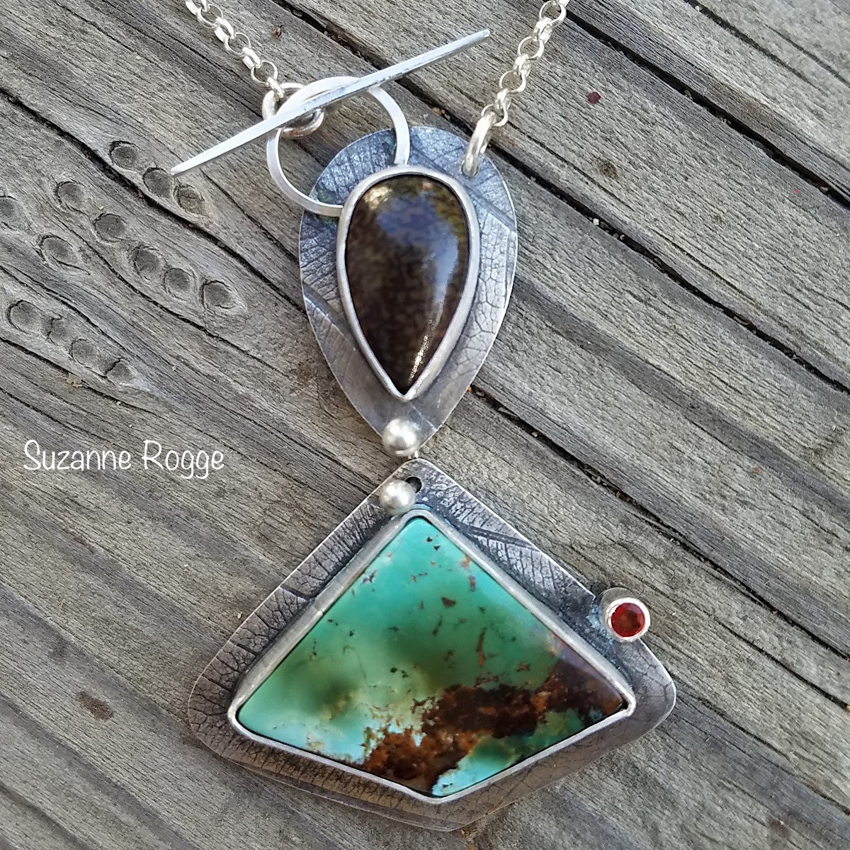 Silver Dino Bone, Royston Turquoise, & Orange Sapphire Lariat Necklace