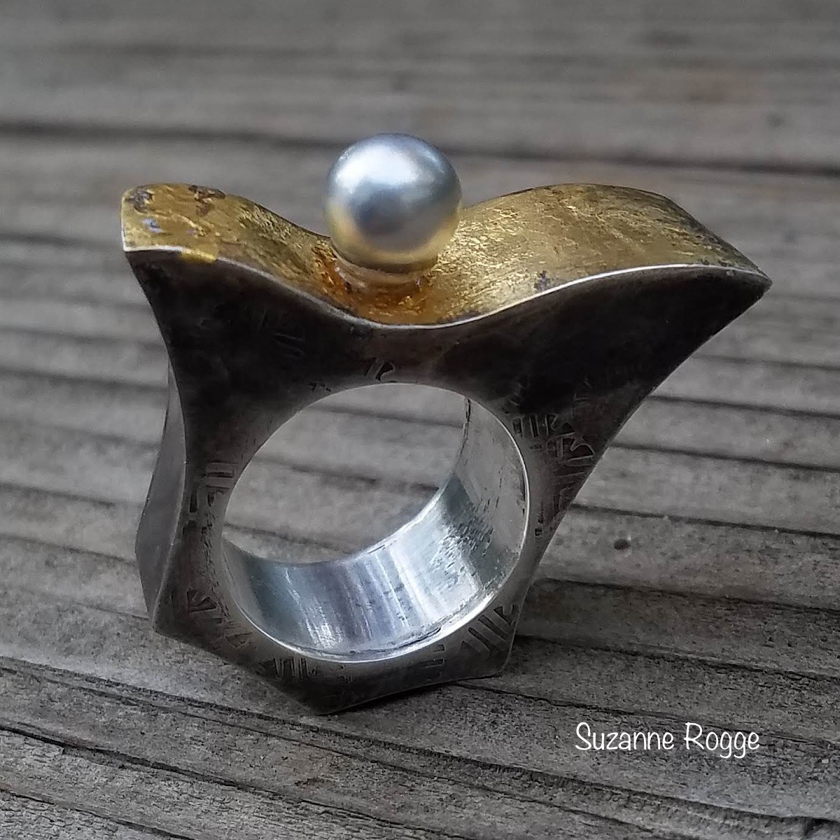 Silver Hollow Box Ring with Pearl & Fused 24k Gold - Silvera Hollow Forms Class