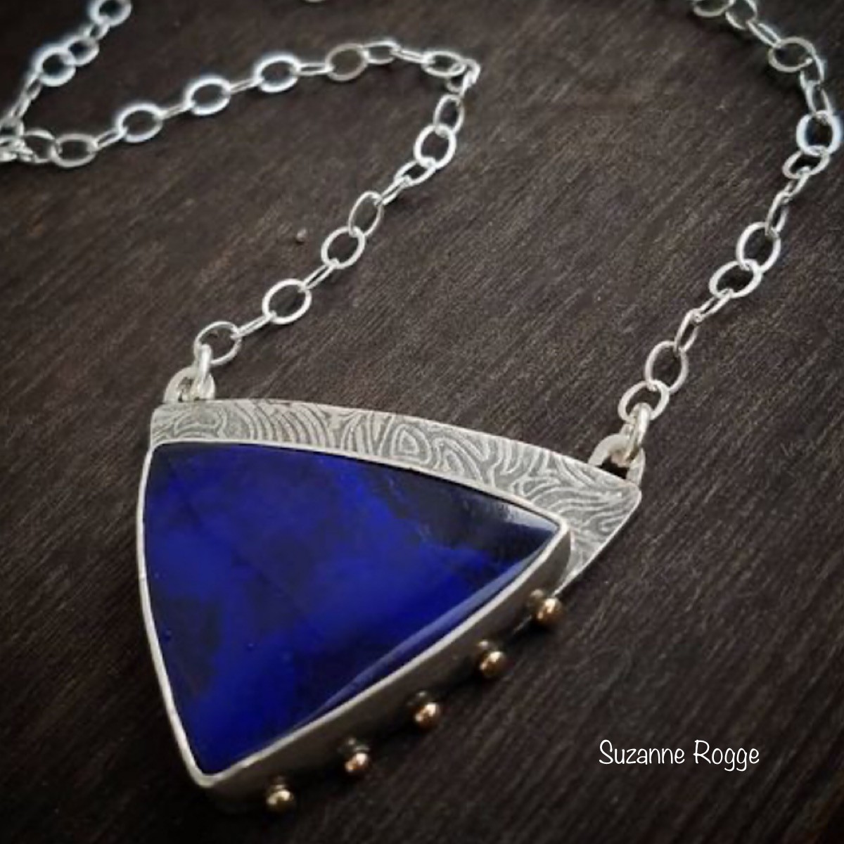 Silver Necklace with Siberian Azurite & 18k Gold Accents