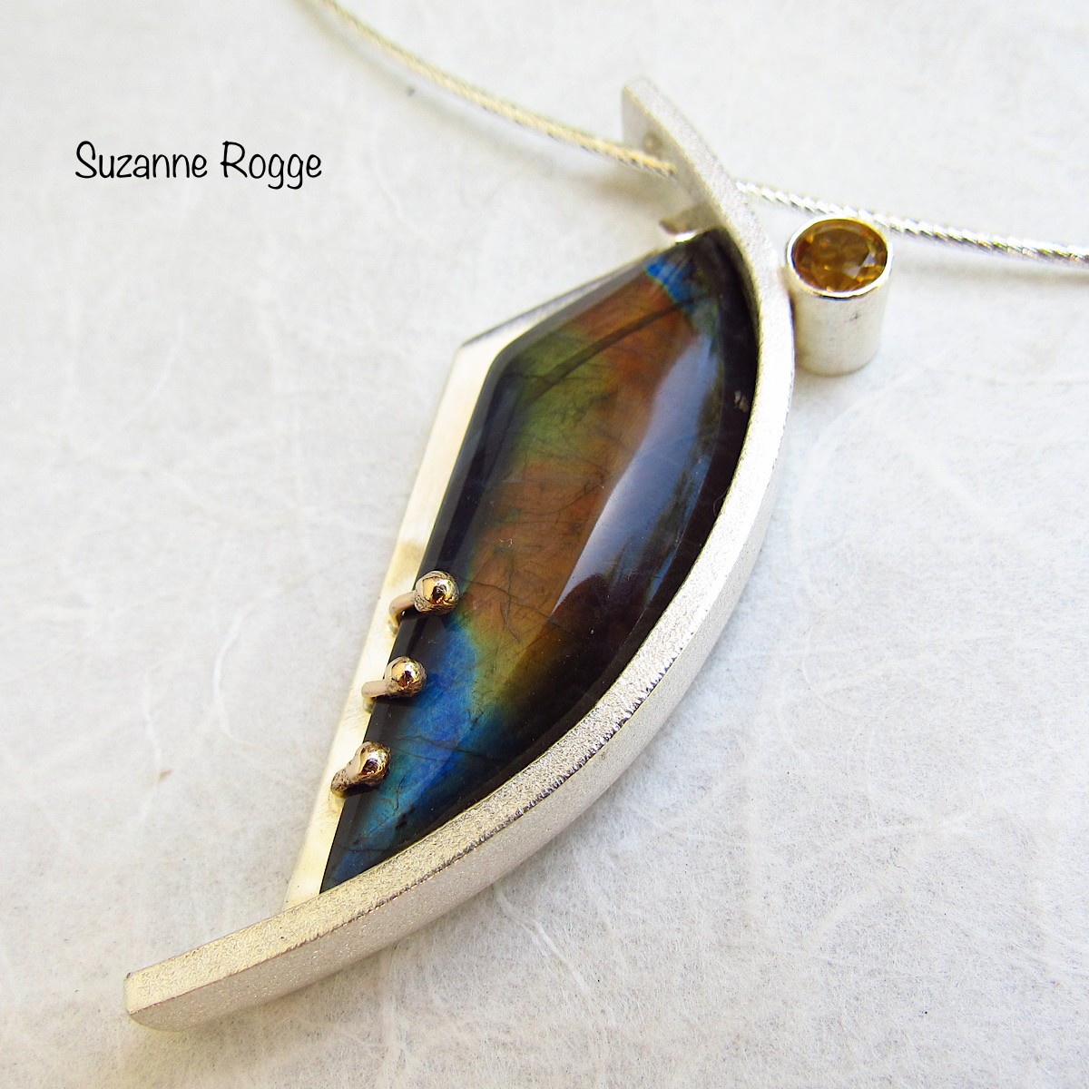 Silver, 14k Gold, Finish Spectrolite, & Citrine Pendant