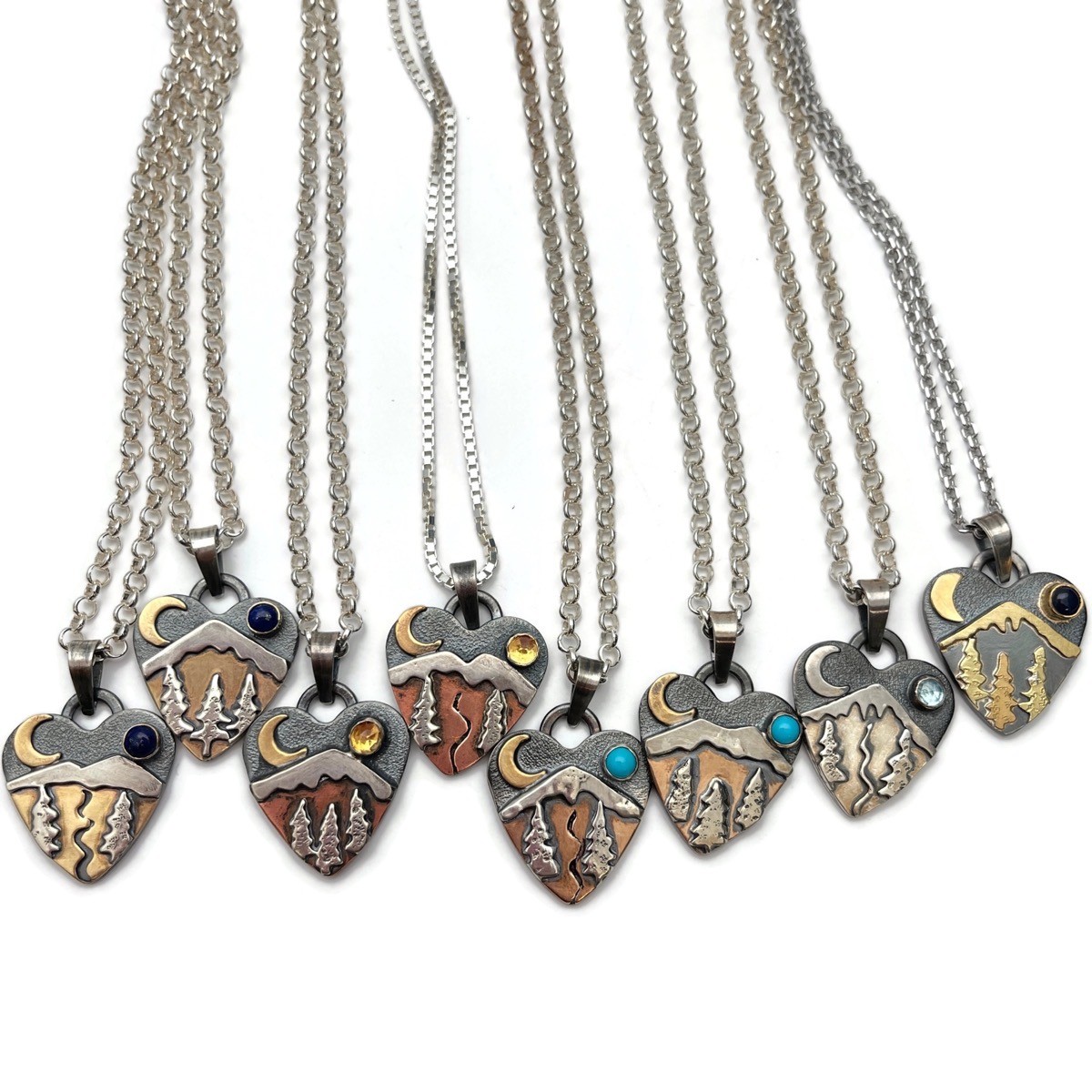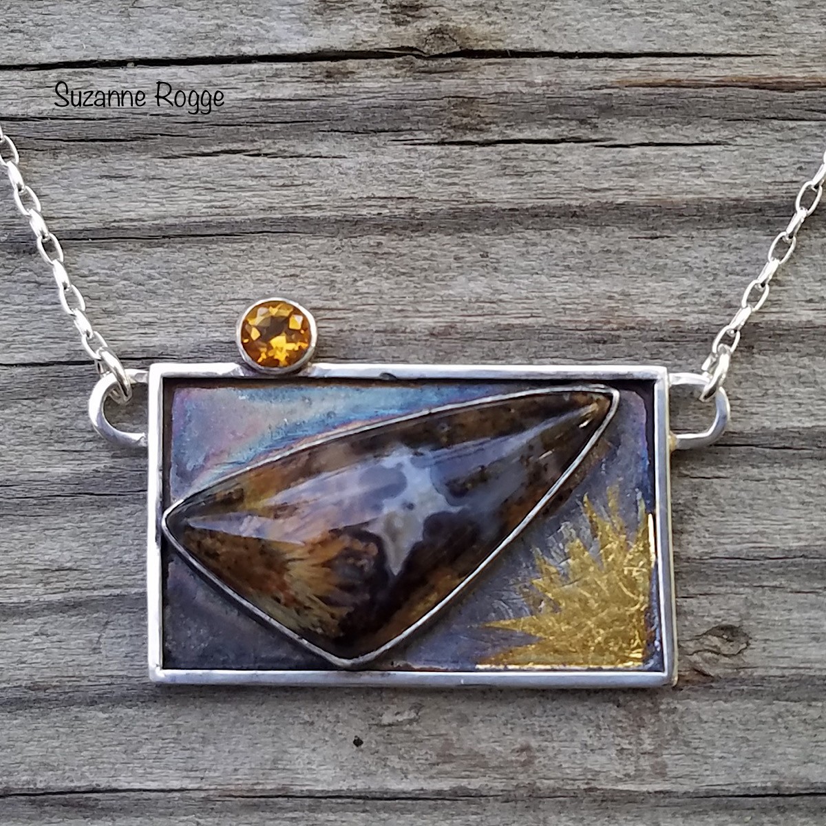 Silver, 24k Fused Gold, Sulphur Patina, Moss Agate, & Citrine Necklace