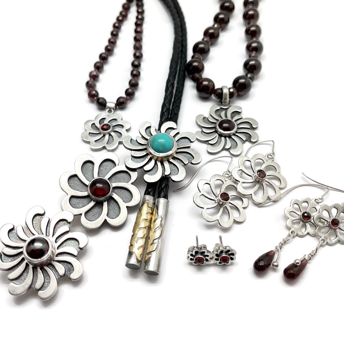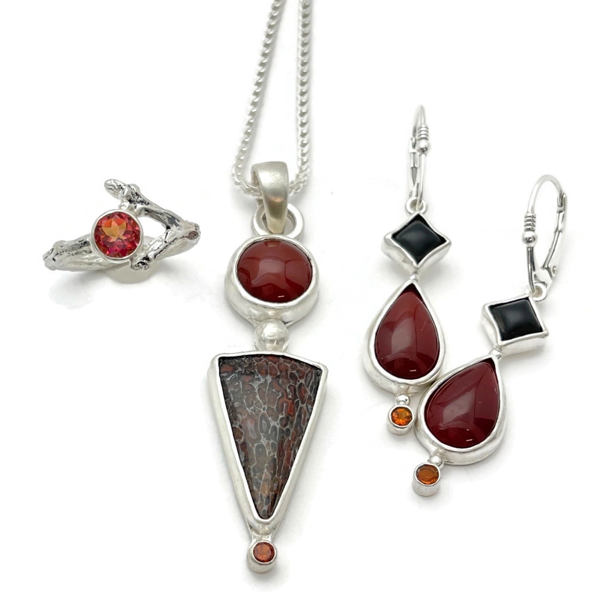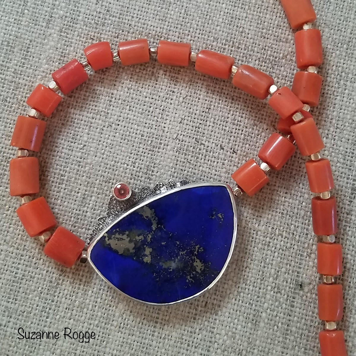 Silver, Antique Coral, Afghan Lapis, and Orange Sapphire Necklace